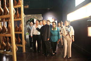 6月28日下午,省人大常委會副主任馮明一行在金華市人大常委會副主任陳志身等的陪同下,參觀考察了建于金字火腿內(nèi)的中國火腿博覽館和世界火腿博覽館,了解金華火腿的行業(yè)發(fā)展現(xiàn)狀。 金字火腿總經(jīng)理吳月肖向馮明一行介紹了金華火腿的歷史文化、傳統(tǒng)制作工藝、營養(yǎng)價值和儲存食用方法。馮明指出,金華火腿雖然是一個傳統(tǒng)行業(yè),但也要跟上形勢,通過各種渠道進(jìn)行推廣傳播,她特別強(qiáng)調(diào)了互聯(lián)網(wǎng)營銷在當(dāng)代企業(yè)發(fā)展中的作用,十分關(guān)心企業(yè)在這一方面的發(fā)展……